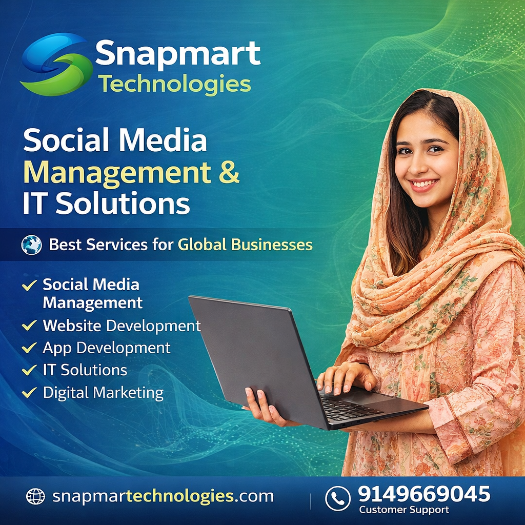 Grow your business globally with Snapmart Technologies 🌍 We provide smart IT solutions, professional social media management, website and app development to help brands scale faster in the digital world. From strategy to execution, we turn ideas into results-driven digital success.